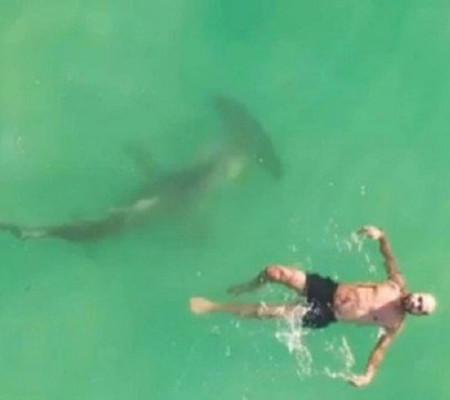 O tubarão acabou nadando para longe, e o banhista saiu ileso, provavelmente sem ter a menor ideia do perigo que correra.