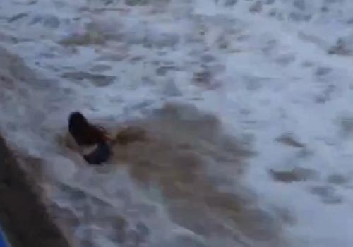 Uma mulher que curtia na praia em Sardinero, em Santander (Espanha), resolveu desafiar o mar e ficou dançando diante da mãe-natureza. Após desdenhar do tamanho da onda que se aproximava, a banhista foi varrida pelo "tsunami".
