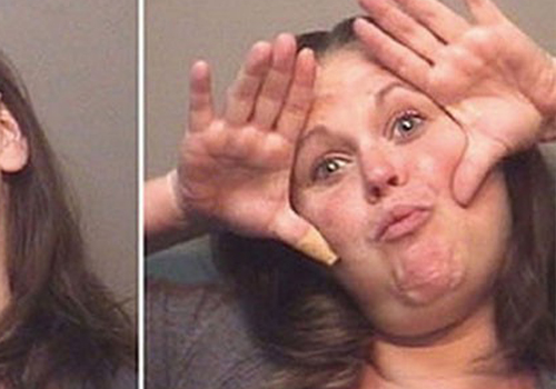 Sandra Grohman, de 29 anos, impressionou policiais de Humble, no estado do Texas (EUA), ao tirar sua foto da delegacia fazendo caretas, após ser presa por embriaguez pública e por colocar a segurança do filho em risco.