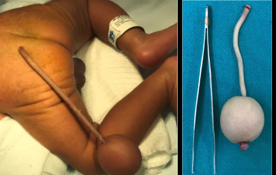 Todos os bebês desenvolvem uma cauda embrionária no útero entre quatro a oito semanas após a gestação, mas ela é normalmente reabsorvida pelo corpo. No caso do bebê, ela seguiu crescendo, chegando a 12 cm, com a bola na extremidade medindo 4 cm de diâmetro.