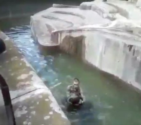 O homem, então, começa a lutar com Sabina. Ele também é visto tentando forçar a cabeça da ursa embaixo d'água enquanto visitantes horrorizados o observam.
