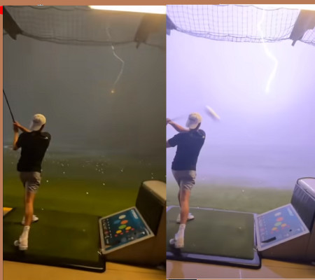 Um vídeo publicado nas redes sociais pelo clube de golfe Topgolf, no Texas, mostra o momento em que uma bola lançada por um jovem é atingida por um raio durante tempestade que atingiu a região.