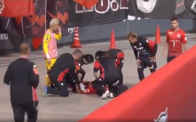 Brasileiro cai em fosso do estádio ao comemorar gol no Japão; assista