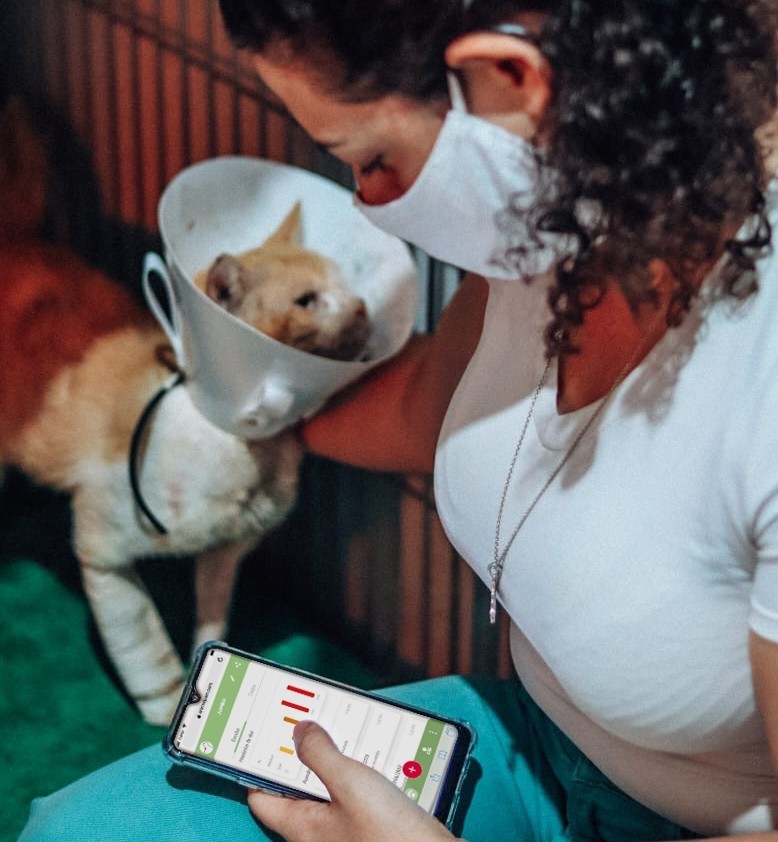 A engenheira explica como funciona a ferramenta: primeiro, o tutor ou profissional deve criar um novo usuário para o animal — por exemplo, “gatinha Lili” —, acrescentando seu peso, sexo e idade; depois, é preciso responder a um formulário com questões sobre a alimentação da gata, se ela está se movimentando e como anda seu sono, por exemplo.