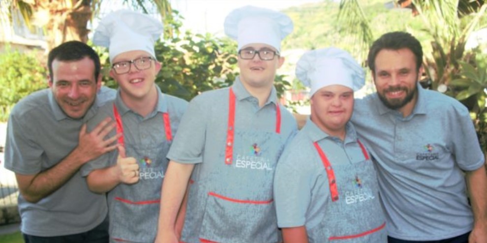 Com o objetivo de trazer uma maior inclusão dessas pessoas no mercado de trabalho, Giorgio Sinestri e Delfino Andrade, criadores da Educare Desenvolvimento Humano, tiveram a ideia genial de criar a Cafeteria Especial. Inaugurada em dezembro na cidade de Blumenau, ela conta com seis funcionarios portadores da síndrome e traz uma proposta de inclusão social em seus diversos aspectos. Além das receitas típicas da região, versões vegetarianas, veganas, sem glúten e sem lactose são servidas e o cardápio está disponível também em braille.