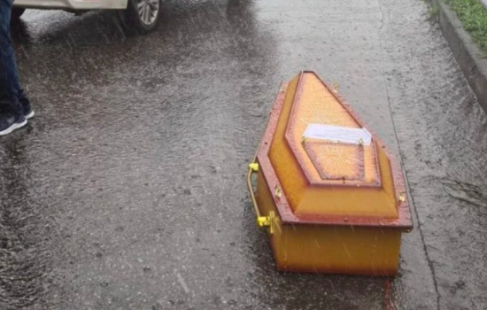 Como estava chovendo no dia, o motorista do carro funerário não teria percebido quando o caixão caiu do porta-malas.