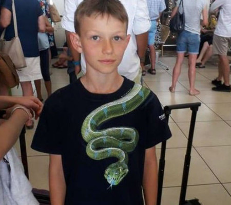 Mais de perto, a  camisa de Stevie era um tanto realista. O aviso foi dado quando ele estava passando pela segurança do aeroporto com a família, quando seguranças fizeram o alerta sobre a camisa dele. Segundo eles, brinquedos e roupas estampadas com cobras não são permitidos em voos.
