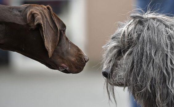 Toda a atenção recebida pelo bicho e seu penteado curioso pareceu levantar "inveja" de outros participantes, já que o cão levou uma "encarada" de outro cachorro de pelo curto.