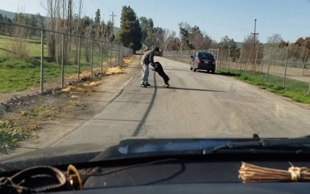 Um vídeo feito nas proximidades do lago Ming, em Bakersfield (Califórnia, EUA) mostrou o momento em que um homem abandonou o seu labrador em uma rua de área mais isolada.