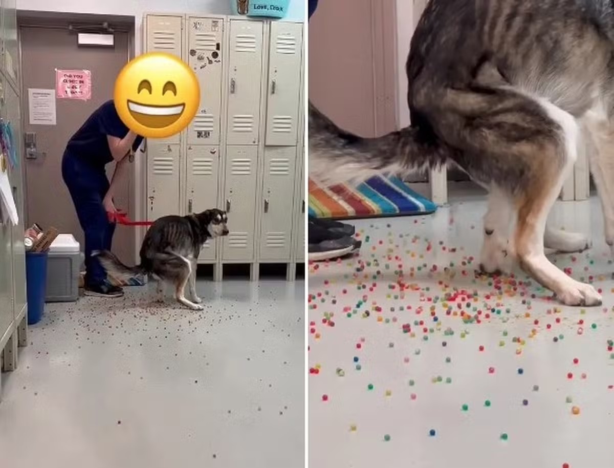 Um cachorro viralizou nas redes sociais depois que foi levado pelo seu tutor a uma clínica veterinária no Colorado (EUA). O animal comeu um pacote inteiro de bolinhas de gel que se expandem na água. E não demorou para que o cão liberasse as centenas de bolinha que ele havia ingerido. E com isso, as colinhas multicoloridas se espalharam pelo chão da clínica, causando gargalhadas nos veterinários e em outras pessoas que acompanhavama cena inusitada.