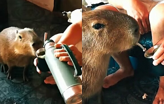 Uma capivara foi filmada apreciando uma cuida de chimarrão - bebida típica do sul do país, produzido pela infusão da planta erva-mate moída em água fervente, em uma cuia com bomba.