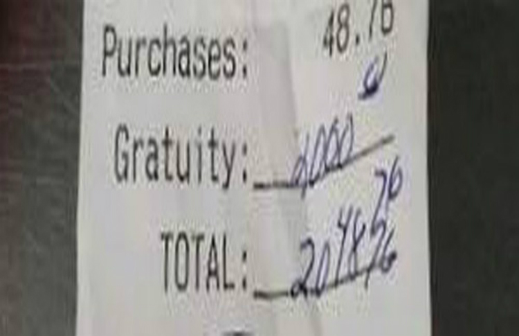 Um casal de clientes de um restaurante dos EUA surpreendeu os funcionários ao deixar uma gorjeta de US$ 2 mil (cerca de R$ 6.258) ao pagar uma conta de US$ 48 (cerca de R$ 150).