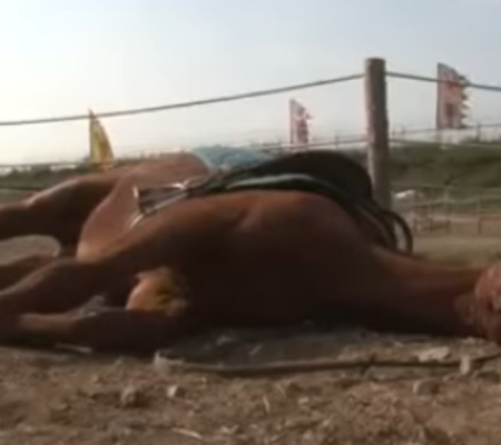 Jingang é um cavalo, mas odeia ser montado. Toda vez que alguém tenta montá-lo, o equino se finge de morto . Tudo para manter afastados os interessados na montaria.