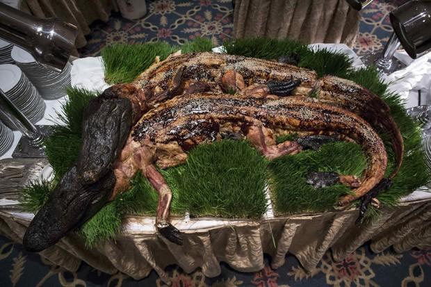 Um evento no famoso hotel Waldorf Astoria em Nova York chamou atenção na noite de sábado (15), por conta do cardápio com componentes extremos. O 110º Jantar Anual do Explorers Club teve as refeições criadas pelo chef Gene Rurka, com direito a aligátors cozinhados inteiros, tarântulas e baratas fritas no espeto, quitutes com escorpião, entre outros pratos exóticos.