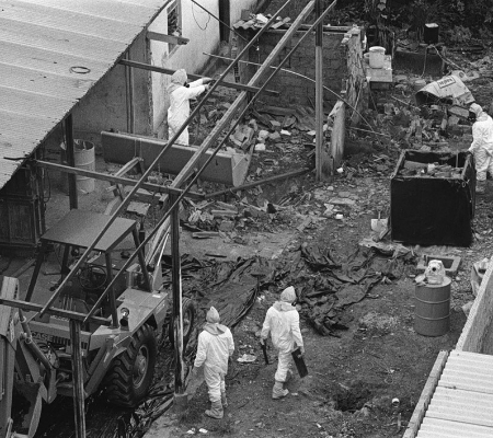 A limpeza da área afetada pelo acidente com o césio-137 gerou 13,4 toneladas de resíduo radioativo que foram armazenadas em contêineres especiais, enterrados sob uma montanha artificial de terra e camadas de concreto e chumbo para evitar a propagação de radioatividade.