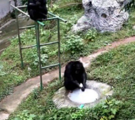 Chimpanzé lava a roupa de sua tratadora em zoológico na China; vídeo