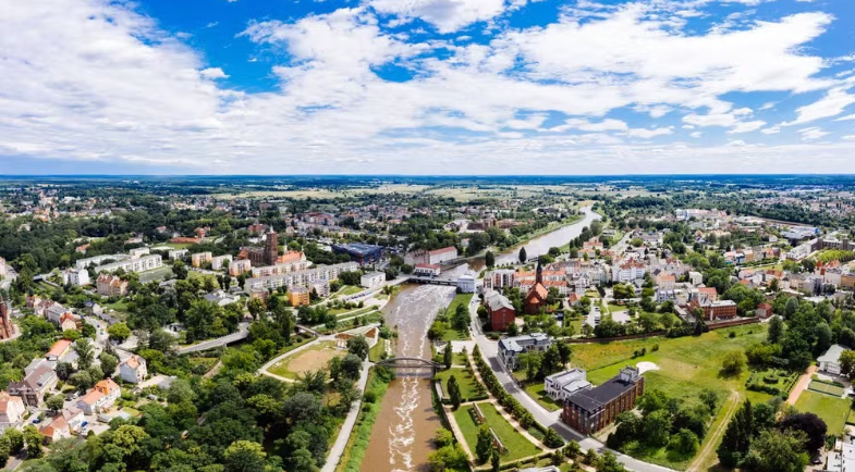 Foto aérea da paisagem urbana da cidade de Guben | Foto: Adobe Stock