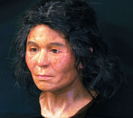 O rosto abaixo é o de uma mulher que viveu no Japão entre 3,5 mil e 3,8 mil anos atrás, integrante da cultura Jomon, a primeira a se estabelecer no arquipélago japonês, entre os anos 10,5 mil a.C. e 300 a.C., e foi recriado por meio da análise de amostras de DNA obtidos a partir de um dente – coletado de um fragmento de crânio descoberto na Ilha de Rebun, que fica no litoral de Hokkaido, situada ao norte do território japonês. Veja:
