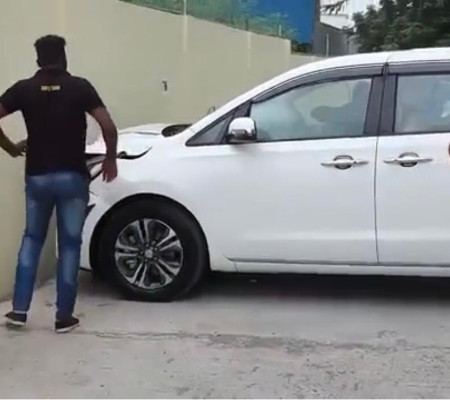 Comprar um carro zero na Índia parece não ser tarefa para iniciantes. Viralizou nos últimos dias mais um vídeo que mostra um cliente deixando a concessionária com seu novo veículo quando, de repente, destrói o automóvel em um acidente bizarro.