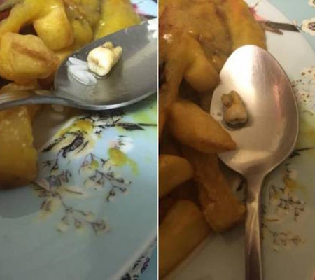 A cliente ligou para o restaurante e fez a reclamação. E ficou ainda mais assustada. O gerente disse que o dente seria, "na verdade", cartilagem animal ou um pedaço de cebola.