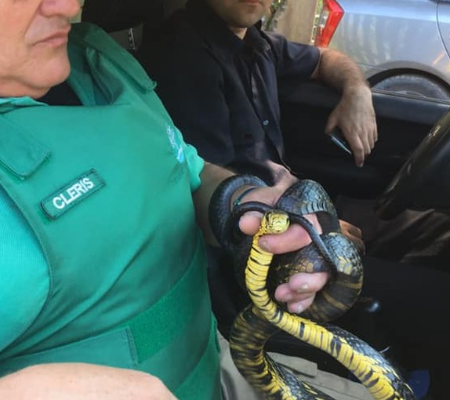 A serpente, que media pouco mais de 2 metros, foi resgatada no final de semana e levada ao Parque Estadual Serra do Mar – Núcleo Itariru. "Veio uma equipe e ela foi capturada, sã e salva. E todos ficaram felizes para sempre, inclusive eu, que morro de medo de cobra".
