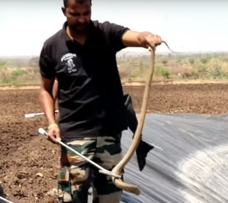 A operação de resgate aconteceu em uma fazenda em Ahmednagar, Maharashtra, Índia. A espécie não é venenosa.