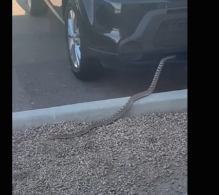 Uma cobra de aproximadamente dois metros foi flagrada saindo de para-choque de carr. No vídeo pode-se ver uma serpente saindo do para-choque de um carro parado no estacionamento de um estabelecimento. As informações são do sputniknews.