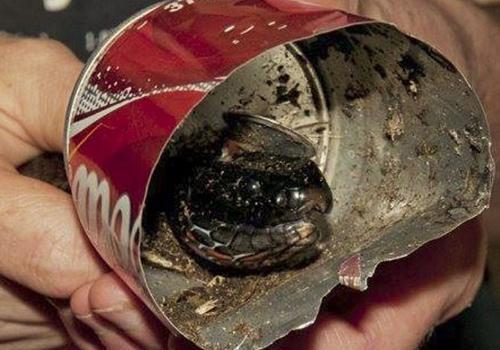 Uma cobra foi resgatada no mês passado no estado da Nova Gales do Sul, na Austrália, após ser encontrada com a cabeça entalada em um lata de refrigerante.
