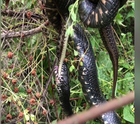 As imagens mostram o momento exato em que uma cobra peçonhenta engole outra serpente lentamente, em um evento não tão frequente de canibalismo, no estado americano do Tennessee. As informações são do Sputinik.