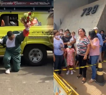 Nas imagens divulgadas nas redes sociais, o homem, identificado apenas como ‘Ítalo’, aparece com um buquê de flores e com o carro de som na frente da agência externando seu amor e suposto arrependimento. “Me dá só mais essa chance. Tô aqui te esperando. Vou te provar o amor que tenho por você. Volte para minha colmeia, minha vida. Eu te prometo que nunca mais vou errar”, disse.