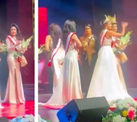 Uma verdadeiro barraco marcou o concurso Miss Sri Lanka no domingo (4), quando a vencedora de 2021, Pushpika De Silva, foi anunciada, mas a coroa foi arrancada de sua cabeça por Caroline Julie, também competidora.