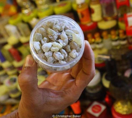Eu nunca diria isso a julgar pelas montanhas de pepitas de olíbano vendidas nas barracas do souq de Mutrah, separadas e precificadas de acordo com sua cor e origem.