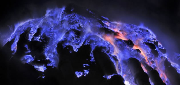É comum os vulcões cuspirem larva alaranjada, mas o que muita gente não sabe é que existe um vulcão chamado Kawah Ijen que cospe magma azulado. O fenômeno da mina de enxofre acontece por causa do componente químico.