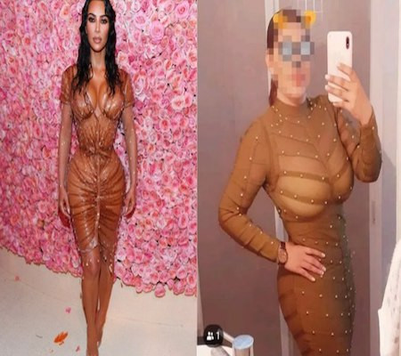 O tabloide mostra foto que foi recentemente postada em um grupo de Facebook sobre vergonhas em casamento que se enquadra nessa segunda situação. A mulher da imagem, que não foi identificada, se inspirou em um modelito usado por Kim Kardashian , mas as reações da web não foram as melhores.