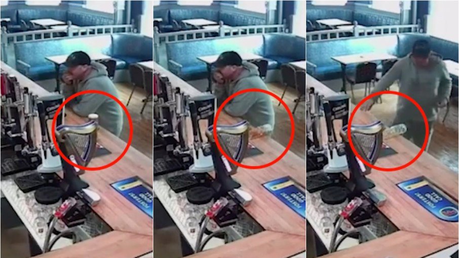 Um copo cheio de cerveja que estava no balcão de um bar na Inglaterra, tombou de repente e assustou as funcionárias e o cliente que estava no local. As imagens da câmera de segurança mostram o momento em que o copo virou, aparentemente, sem ninguém ter empurrado.