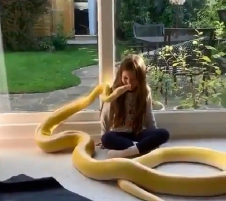 A amizade entre uma menina e uma cobra tem causado estranheza nas redes sociais. Depois de viralizar ao ganhar um abraço do cobra enquanto dormia, agora a garotinha ganha um beijo da phyton amarela. O vídeo postado no Twitter já conta com 11,1 milhões de visualizações, 27,9 mil curtidas e 8,1 mil compartilhamento. As informações são da Revista Marie Claire.