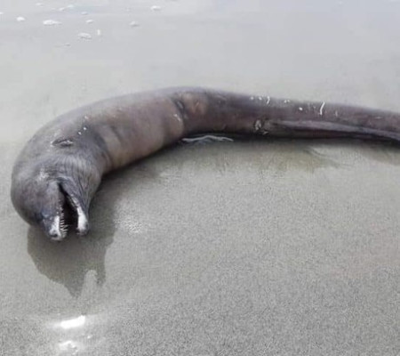 Os moradores e frequentadores da praia de Destiladeras, na costa do Pacífico do México , foram surpreendidos pela aparição de uma criatura estranha que não possuia olhos e se parecia com um golfinho. O animal foi encontrado morto.