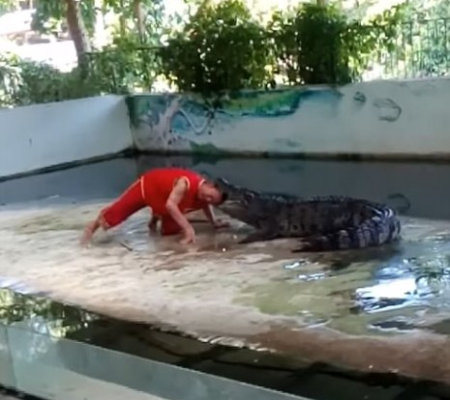 O público de uma apresentação em um zoológico da Tailândia ficou horrorizado com as cenas que presenciaram: o crocodilo, que fazia parte de um show, mordeu a cabeça do treinador que conduzia a performance. As imagens chocantes foram gravadas por um espectador e, em seguida, publicadas nas redes sociais.