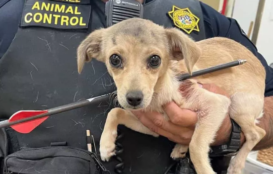 Uma moradora da região do sul da Califórnia acionou a emergência após encontrar uma Chihuahua de quatro meses gritando de dor. O animal precisou ser atendida por veterinários depois de ser atingida por uma flecha no pescoço.