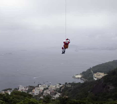 tradicional Papai Noel da cidade de Canela (RS) chegou hoje (5) ao Rio de Janeiro em grande estilo: desceu de rapel de uma altura de aproximadamente 100 metros de um bondinho entre o Pão de Açúcar e o Morro da Urca, local que ilustra cartões postais da cidade. As informações são do Notícias ao Minuto.