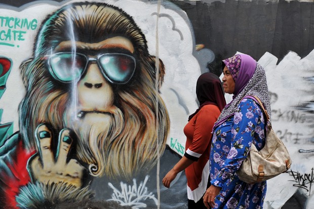 Grafite parece "posar" para foto em rua de Kuala Lumpur, capital da Malásia (Foto: Mohd Rasfan/AFP)