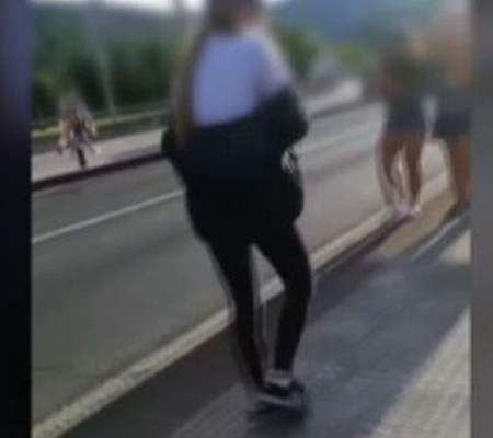 A gravação mostra um grupo de meninas caminhando na rua. A certa altura, uma das jovens é empurrada contra outro grupo de pessoas e gravada pelas amigas, que se desesperam ao perceber que a jovem se desequilibra e quase é atropelada.