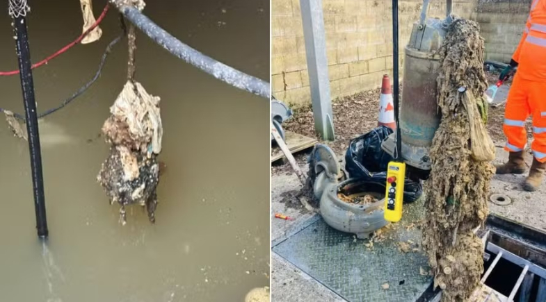 Funcionários da Thames Water, que presta serviços de água e esgoto a 16 milhões de clientes, também encontraram no conjunto grande quantidade de lenços umedecidos.