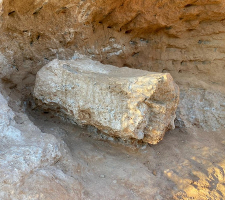 Envolvido em uma dura camada de arenito (rocha formada por areia aglutinada e cimento natural, densa como quartzo) o exemplar, ainda nessa forma bruta, vai para o Museu de Paleontologia, onde será limpo, em um processo que levará mais algum tempo.
