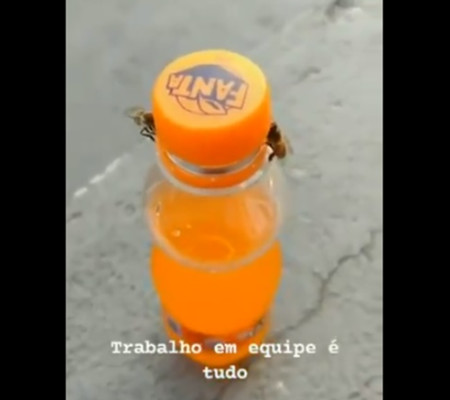 Um vídeo de duas abelhas trabalhando juntas e em sintonia para abrir a tampinha de uma garrafa de refrigerante viralizou, com uma lição sobre trabalho em equipe. Ele mostra as duas abelhas, uma em cada lado da garrafa, girando a tampa para que ela se abra - e conseguindo cumprir a missão.