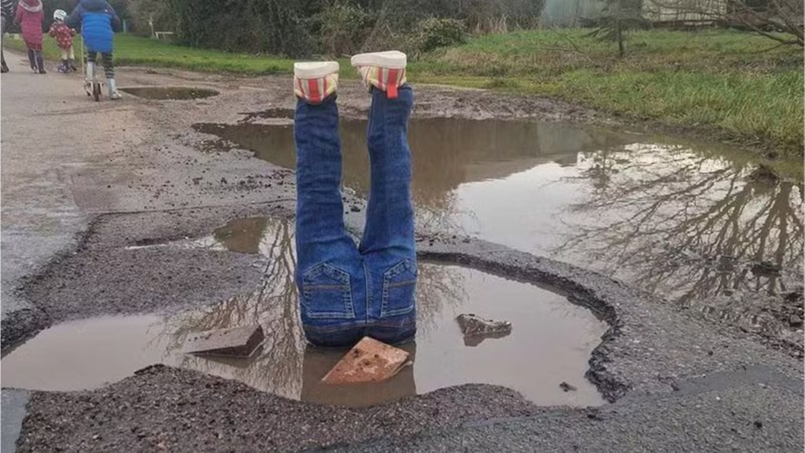 James Coxall, é um morador de 41 anos do Reino Unido, que encontrou uma maneira criativa de protestar contra um buraco que há oito meses causava transtornos para motoristas em sua cidade. Para chamar a atenção das autoridades, ele instalou pernas falsas dentro da cratera cheia de água da chuva, simulando uma pessoa de cabeça para baixo.