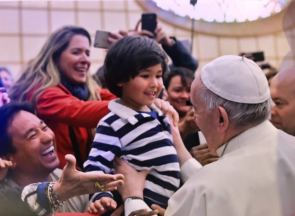 O fisioterapeuta Anderson Kirihara lembra que na época, durante uma viagem pela Europa, aproveitou para acompanhar a bênção papal na Praça São Pedro, quando foi surpreendido ao ter o filho, então com três meses, escolhido em meio à multidão de fiéis.