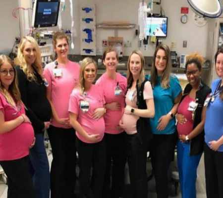 A americana Hillary Slusser pensou que estivesse gripada ao se sentir mal no trabalho e voltou para casa. Com enjoo, resolveu fazer teste de gravidez. Deu positivo. No entanto, o que se destaca nesta história é que a gravidez ocorreu em série na emergência do hospital da Vanderbilt University, em Nashville (Tennessee, EUA). Neste momento há 17 funcionárias da emergência esperando bebê: 14 enfermeiras, duas médicas e uma assistente social. As informações são do Extra.