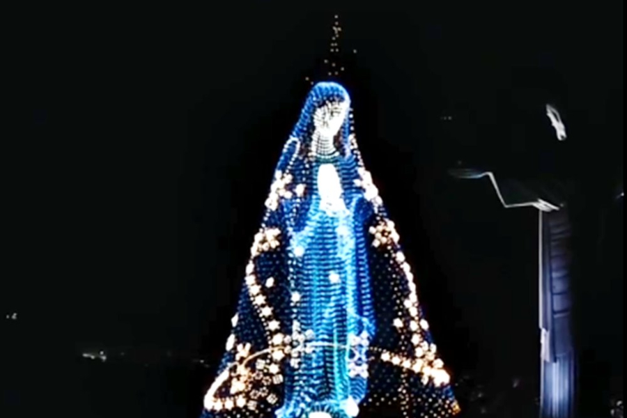 Em homenagem ao Dia das Mães, celebrado neste domingo (11/5), a imagem de Nossa Senhora Aparecida, mãe de Jesus, foi projetada ao lado do Cristo Redentor, iluminando o céu do Rio de Janeiro. Considerada padroeira do Brasil, Nossa Senhora Aparecida ocupa um lugar central na fé católica do país.