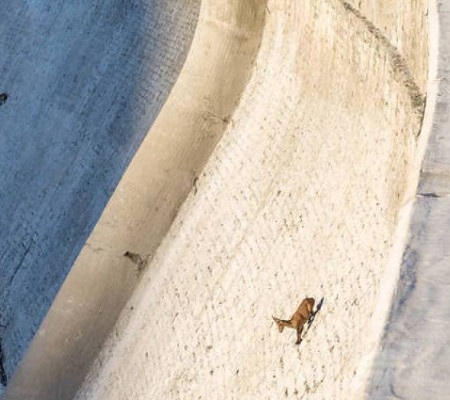 Ele parece um carneiro, mas é de outra espécie. No registro é possível ver a habilidade impressionante do quadrúpede caprino.